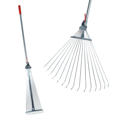 Грабли веерные раздвижные металлические с металлической ручкой